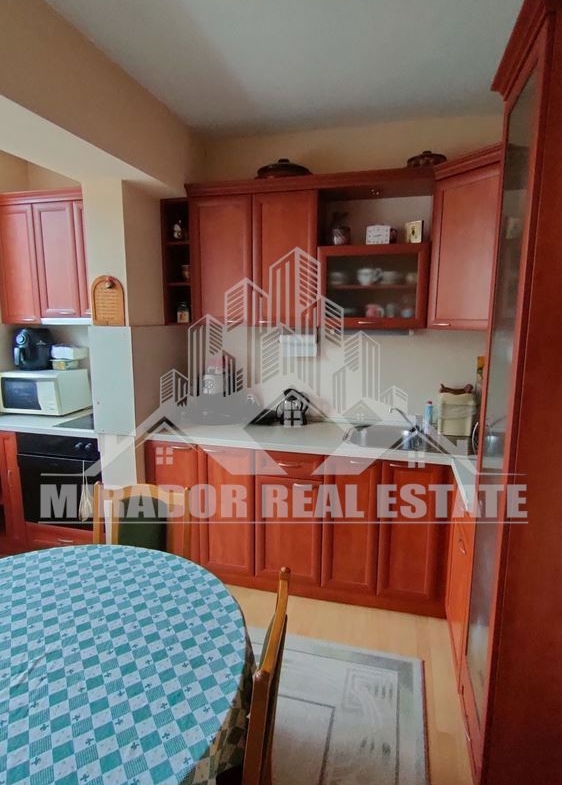 Разпределение:Коридор,кухня с усвоен балкон - вградена кухня с всички електроуреди;- спалня;- всекидневна (хол) - с остъклена тераса;- баня;- тоалетна;- килер.